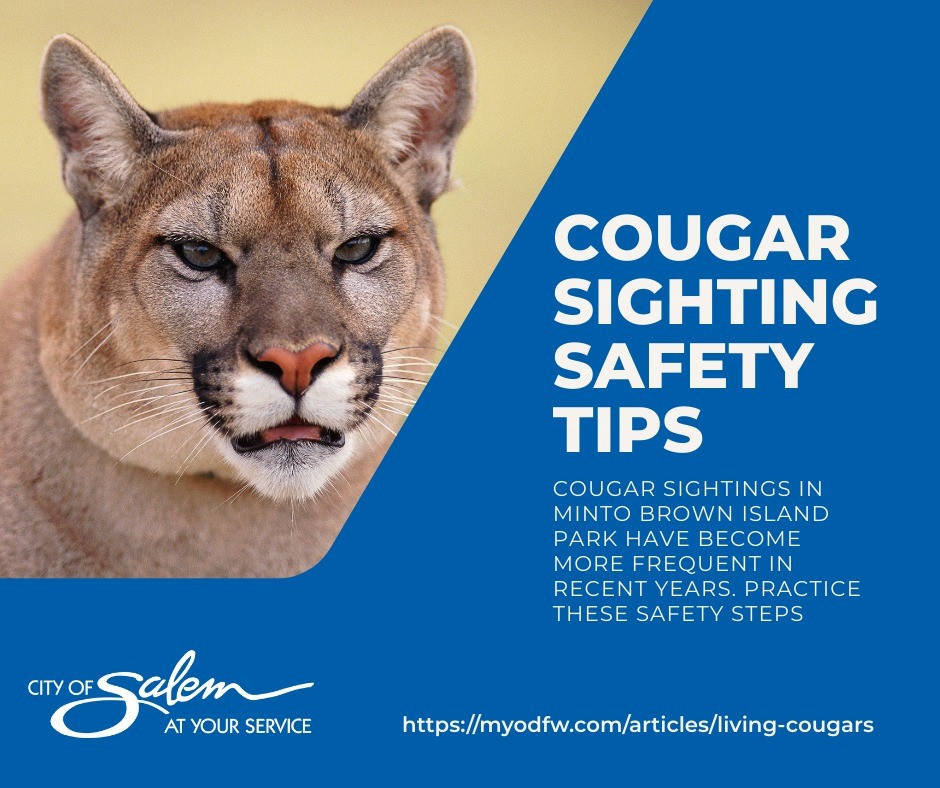 Recent cougar sightings at Minto-Brown Island Park are a reason for caution, not alarm. Unconfirmed reports suggest multiple cougars have been seen around dusk and dawn.
