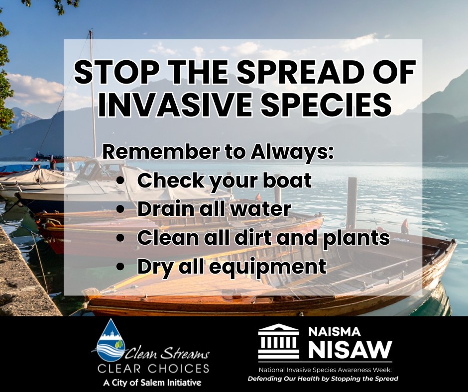 In Salem, we have invasive species like nutria (a type of rodent), ludwigia (a plant), red-eared slider turtles and American bullfrogs. Some invasive species, such as ludwigia, can travel on your boat and spread to other lakes and rivers. That’s why it’s important to follow the CDCD method every time you take your boat out of the water: