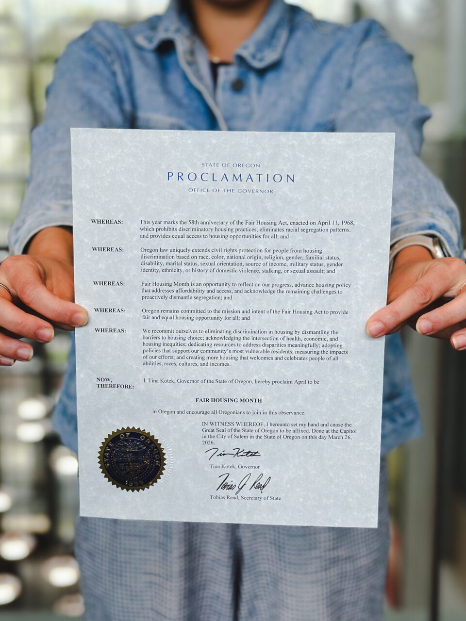 SALEM, Ore. — Oregon Housing and Community Services (OHCS) celebrates April as Fair Housing Month in Oregon following Governor Tina Kotek’s proclamation. The designation recognizes the state’s ongoing work to ensure fair and equal housing opportunities to all Oregonians.